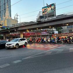 Meanwhile-Bangkok is a crazy place. Reminds me a bit of Times Square. So much traffic-so many Vespas and motorcycles, and pedestrians be damned. NOBODY waits for you at crosswalks. It’s a game of frogger .
