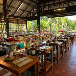 Tonight is our last night in Thailand. Tomorrow we say goodbye to the “land of smiles,” and head to Vietnam. We had planned a long tail tour of some islands today. We thought we had set it up as a private tour, but that’s not what it was when we got to the dock. We had hoped we could go to some more secluded areas, or at least go to the popular areas in a different order than all the other boats, but no, apparently even that wasn’t an option. We had heard about crowds, so we opted out, and instead, rode our mopeds again and found a cool, kinda quiet little place to hang out, read, and have lunch.