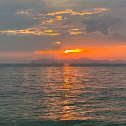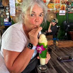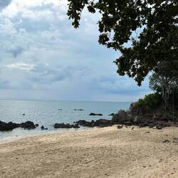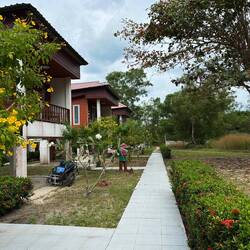 Today was a bit of an adventure. We flew from Chiang Rai to Krabi via Bangkok. Once in Krabi, we called a Grab (like an Uber)- nothing particularly unusual about that. Our Grab driver took awhile to get there, and by that time, we were running very short on time to get to our little ferry on time (1/2 hour trip). Our driver initially was on island time and wanted to chat-we emphatically told her we were in a big hurry to get to the ferry. She acted like she didn’t know where we were going and then tried to tell us there were no more ferries today, and also that we would have to pay more money. Finally, Bryan told her he used to live here (letting her know we knew better) and he would give her a tip if she got us to the ferry on time. It worked and she hustled, getting us to the longtail just in time. We sat on the floor of the longtail and our resort pickup was the back of a pickup truck with some benches. It was fun! The little resort is fine-we are in a little bungalow without air conditioning, but we have a good fan. Adds to the adventure.Læs mere