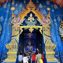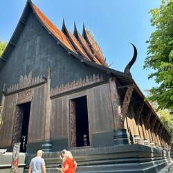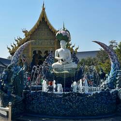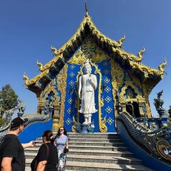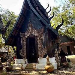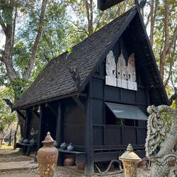 So what to say about Chiang Rai. It definitely does not have the charm of old town Chiang Mai. Nontheless, we found a driver who took us to 3 temples-informally the White and Blue temples and the black museum. These are less temples and more art museums, with the actual artists footing the bill from what I understand…or maybe part of the bill. The architect of the white temple (which really is fairly magnificent and not yet finished) has a gallery of his paintings and sculptures, whimsical and intricate all. He also designed a very intricate clock tower in the middle of the city. The Black museum was interesting in that there were various buildings in the styles of different peoples and hill tribes of northern Thailand. Our “tour guide” clearly knew very little about the art.