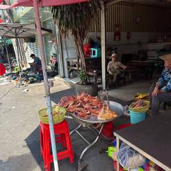 This afternoon, we took a food tour with a local guy. If you travel, a great way to learn about a place is to book a tour with a guide from a website called Withlocals. We’ve always had good luck, and they tend to take you off the beaten path much more than tour websites like Viator. They also tend to be quite affordable. But I digress. Our guide took us to his favorite places, and not only showed us his favorite traditional foods, but also how to put them together. In Vietnam, again, it’s complicated. You get brought plates and bowls of stuff, but now what? Well, sometimes things are assembled and rolled in rice paper, sometimes several foods are assembled into a bowl and mixed. Usually this is the case, and chili sauce is added to taste. The Vietnamese believe in yin and yang of flavors. You want sweet and salty or sour and/or bitter. Always rice or noodles. Or something made with rice. We appreciate anyone who takes their food this seriously! (I am so dreading the bathroom scale when I get home).