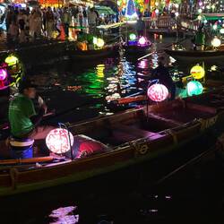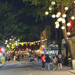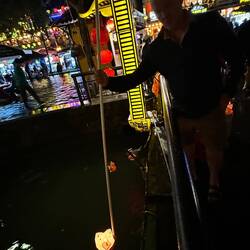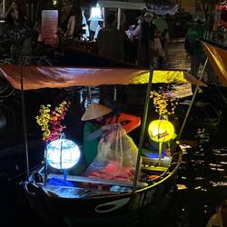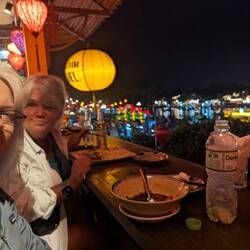 We arrived in Hoi An this afternoon, to a very lovely Airbnb in the old city. It’s a gorgeous city filled with lights and lanterns and TOURISTS! A lot…a LOT of tourists. This place is famous both for its lanterns and for its tailors. Apparently you can get custom made clothes made in a day very cheaply. However, our first order of business was to find food, which we did, at Phuong Banh Mi, made famous by Anthony Bourdain. He wasn’t wrong-the Banh Mi was fantastic. We think we might have it breakfast, lunch and dinner. Later, after dark, we headed to the river where boats with lanterns sail up and down the river and people set little paper lanterns afloat to make wishes. It looked like some sort of huge festival, but this is every night here.Læs mere
