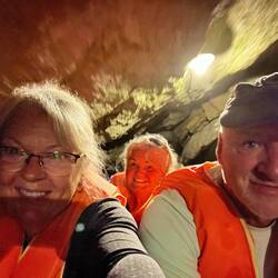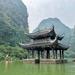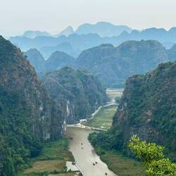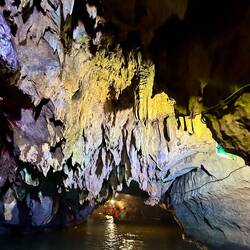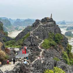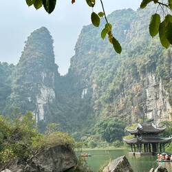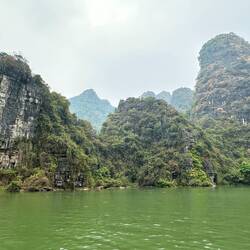 We took a boat tour through the river, passing through some amazing caves. One must have been a good mile long. Later we climbed 500 steps to a temple at the top of a karst for some beautiful views.
