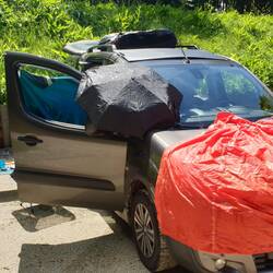 Nous en avons profité pour faire sécher et charger la batterie avec le panneau solaire