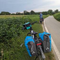 Fahrräder raus und los... Ah nee doch nicht. Den ersten Platten habe ich schon in Trier. Dank YouTube ist der Schlauch "einigermaßen schnell" getauscht. 😅