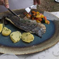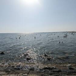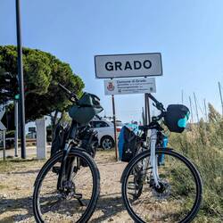 Den größten Teil des Tages haben wir am Strand verbracht. Schon morgens betrug die Wassertemperatur 28°. Hier in Grado machen gerade ganz schöne viele Leute Urlaub (vor allem Deutsche). Die StadtBaca lagi