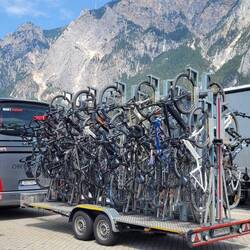 Nach dem Frühstück verlassen wir das Hotel pünktlich um halb 10, um den Fahrrad-Bus nach Salzburg zu nehmen. Über die gesamte Fahrt sehen wir immer wieder Teilabschnitte des Radweges undBaca lagi