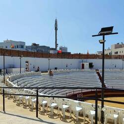 Da es hier so schön ist, beschließen wir trotz neuer, aufdringlicher Nachbarn nochmals zu verlängern. Auf unserer Frühstückstour entdecken wir Tarifas Stierkampfarena. Hier finden tatsächlich noch Stierkämpfe statt. Nach unserer Rückkehr parken wir das Womo kurzerhand andersrum und müssen die neuen Nachbarn somit nicht mehr sehen.