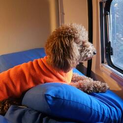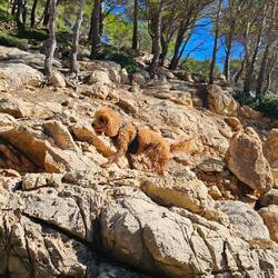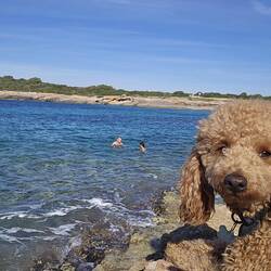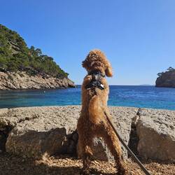 was für eine Woche... ich weiß gar nicht, wo ich anfangen soll. Vielleicht beim Allerbesten: Ich habe euch doch letzte Woche von der Überraschung erzählt, die Mama für mich hatte. Naja und als ich am Samstag eigentlich schlafen gehen wollte, sind wir erstmal einkaufen und dann zum Hundestrand gefahren. Da war es sogar schon dunkel! Mitten in der Nacht sind wir dann zum Flughafen nebenan gefahren und ich konnte meinen Äuglein nicht glauben, wen wir da abgeholt haben: PAPA! Ich habe mich gefreut wie ein Schneekönigspudel, war aber auch ganz schön platt. Wir haben uns also einen ruhigen Stellplatz für die Nacht gesucht und den nächsten Tag gemütlich am Hundestrand verbracht. Am Montag musste Mama dann nochmal zur Schule, bevor sie zwei Tage frei bekommen hat, weil sie die Zeit nacharbeitet. Papa wollte nochmal nach Portocolom, also sind wir da am Montag Abend hingefahren. Da fühlen wir uns alle pudelwohl! In der Nacht gab es jedoch ein heftiges Gewitter, was mir aber nichts anhaben kann. Die anderen beiden wurden dadurch viel zu unruhig, wodurch sie mich vom meinem wohlverdienten Schönheitsschlaf abgelenkt haben. Was soll's... Am Dienstag war das Wetter dann wieder schön und wir haben die Ruhe auf den Klippen oben genossen. Mama und Papa haben fleißig gelesen und ich habe Schlaf nachgeholt. Mittwochs gibt es in Santanyí immer einen Markt, den wir uns dann auf dem Rückweg Richtung Palma angeschaut haben. Man, war da viel los. Die beiden Lümmel haben einen Stand mit Backwaren fast leer gekauft, aber dann zum Glück für mich auch noch Kekse mitgenommen. Abends haben wir südlich von S'Arenal einen ruhigen Stellplatz gefunden und Mama und ich sind nochmal nach Palma rein gefahren, um uns mit den anderen Praktikantinnen zum Essen zu treffen. Papa ist lieber beim Columbus geblieben. Am Donnerstag musste Mama dann wieder arbeiten und Papa und ich haben gemütlich auf sie gewartet. Mittags waren wir dann noch in Can Pastilla unterwegs und abends wieder auf dem ruhigen Stellplatz der letzten Nacht. Dort in der Nähe haben wir dann noch Paella gegessen, auch wenn ich nicht wirklich viel abbekommen habe. Immerhin war der Kellner nett zu mir und hat mir sogar Eis in mein Wasser getan! Heute morgen sind wir dann ganz früh aufgestanden und haben Papa wieder weg gebracht. Am Hundestrand haben wir dann noch gesehen, wie sein Flieger weg geflogen ist. Nun sind wir wieder nur zu zweit und ich musste heute lange im Camper warten. In der Mittagspause waren wir noch kurz in der Nähe vom Ballermann und danach musste Mama nochmal für 2-3 Stunden in die Schule, weil die da ein Projekt zum Tag der deutschen Einheit hatten. Für mich ziemlich doof aber immerhin waren wir später noch in der Stadt unterwegs und abends lange Spazieren.