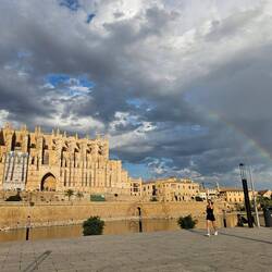 Sonntags ging es (leider bei Regen) Richtung Palma. In Arenal haben wir Fahrräder geliehen und ich wurde kurzer Hand ins Körbchen gesteckt. Auf dem Weg hat es wie aus Eimern gegossen und ich war wortwörtlich ein begossener Pudel... Ich musste zwar nicht treten, dafür wurde mir aber bitter kalt. Das erste Mal hier... Ich habe einen Pulli angezogen bekommen und wir haben uns entschieden schnell wieder zurück zum Camper zu fahren, um uns aufzuwärmen und wieder trocken zu werden. Auf dem Rückweg gab es sogar noch Gewitter. Was für ein Abenteuer... Mit Oma und Opa wird es nie langweilig.