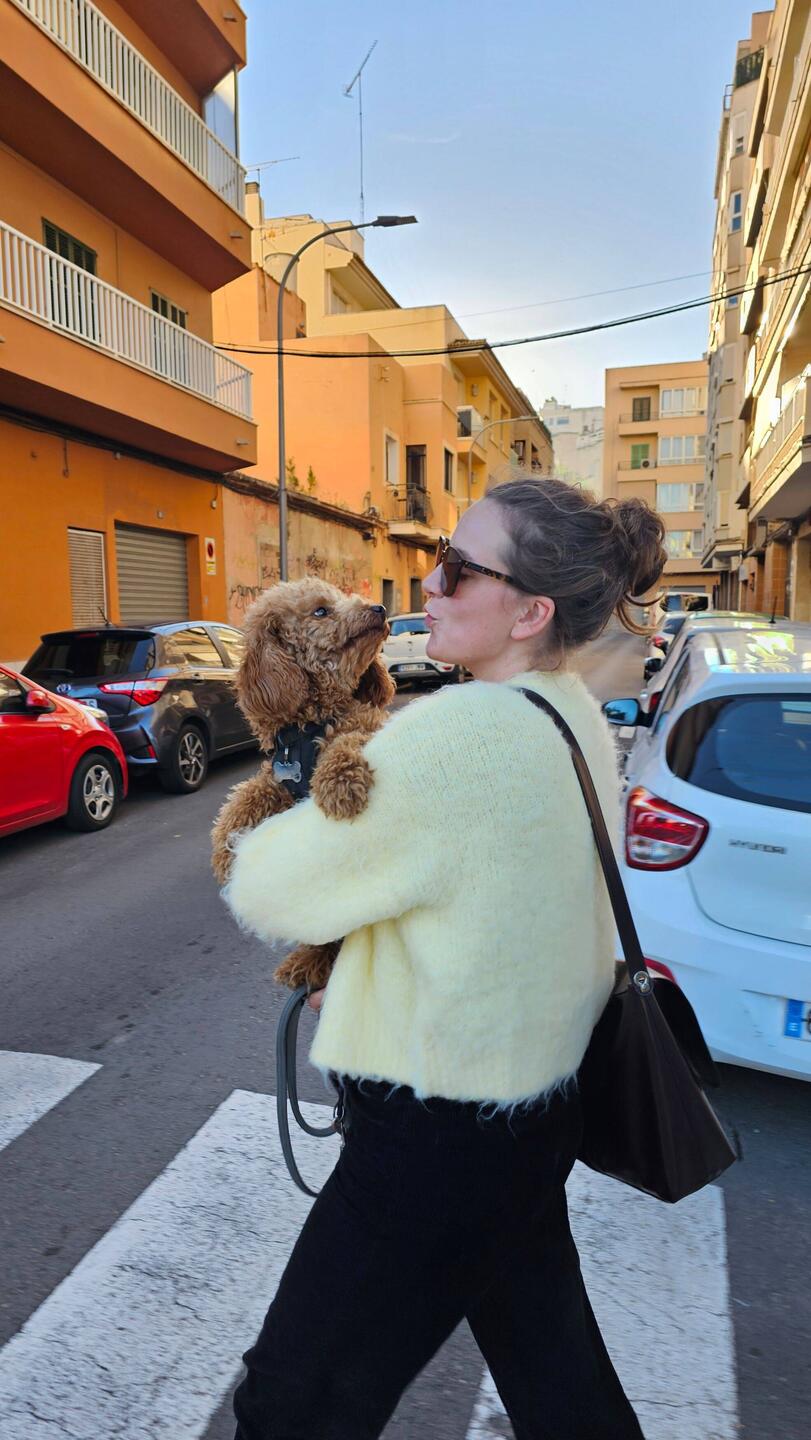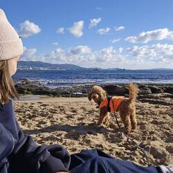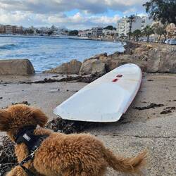 Kommen wir zur letzten Woche: Am Samstag hat es leider etwas geregnet. Lena und Oma waren ja noch da und wir sind alle zusammen nach Samtanyi auf den Markt. Leider waren nicht mehr so viele Stände da, wie sonst. Wurst gab es aber noch. In einem Café wurde ich bestens bedient und haben fett Hundekekse abgestaubt. Nachmittags sind wir dann nach Colònia de Sant Jordi und waren am Strand spazieren. Mittlerweile ist es zum Glück nicht mehr so streng und ich kann meistens mit kommen.