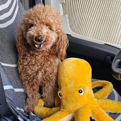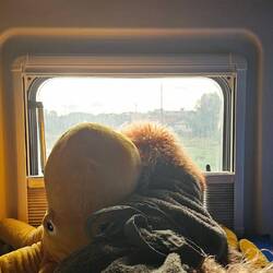 Am Dienstag hat es dann bei mir angefangen mit Bauchschmerzen... alles ziemlich doof, aber wird bald hoffentlich besser. Mama war da dann bei Ikea und hat mir einen riesigen Wunsch erfüllt! Schon bei unserem letzten Besuch von einigen Wochen wollte ich unbedingt die gelbe Krake habe. So eine saß auch immer in einem Schaufester bei unserer Bushaltestelle. Und Freunde, was soll ich sagen: Ich habe sie echt bekommen! Mama sagt, sie ist eigentlich zu groß für mich und das Reisen im Camper. Ich habe sie dann an eine Geschichte erinnert, die Oma und Opa mir mal erzählt haben: Bei einer Camperreise mit der ganzen Familie hatte jeder nur ganz begrenzt Platz, doch Mama hat ihren riesigen Mochhichi Chichi mit ins Wohnmobil geschmuggelt... Da kann sie sich jetzt ja wohl kaum beschweren.