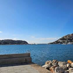 Am Samstag Morgen als es hell wurde, konnte ich Oma und Opa von dem Stellplatz in Portocolom überzeugen und wir haben den Blick hinten aus dem Bett heraus genossen. Anschließend sind wir über die Klippen an eine wunderschöne Bucht spaziert und die anderen sind nacheinander ins Wasser: Erst Oma und Opa, dann Mama. Als Mama schwimmen war, hat Opa mit mir draußen gewartet. Bilder davon erspare ich euch lieber... Opa hat noch einen verrückten Kletterer kennengelernt. Mehr davon könnt ihr im Blog von Oma und Opa lesen. Abends sind wir noch durch Portocolom geschlendert und habe dicke Geschenke für Oma geshoppt. Geburtstag und Weihnachten stehen vor der Tür.