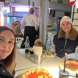 Donnerstag war voraussichtlich der letzte heiße Tag mit Sonne, sodass wir uns nach der Schule mit Alina an den Strand in die Sonne gelegt haben. Das war wohl der letzte Tag in Badesachen am Strand. Mir ist das ja egal, solange ich toben kann... Nachdem die beiden fleißig in einem Café gearbeitet haben, haben wir uns abends Pizza am Strand gegönnt. Ich hätte zwar gerne mehr Mozzarella essen können, konnte mir aber ein bisschen was ergaunern.