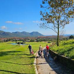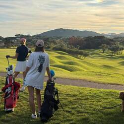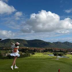 Am letzten Freitag haben wir am Flughafen Helene abgeholt. Mama hat sich sehr gefreut, sie wieder zu sehen. Den Abend haben die beiden dann noch ein Weinchen getrunken und dann ging es schon bald ins Bett. Am Samstag Morgen kamen dann Amrei und Tim und die Truppe für die Golfreise war endlich komplett. Bevor wir jedoch zum Golfen aufgebrochen sind, waren wir am Samstag noch in Palma unterwegs und haben unsere Beine schon einmal für das viele Laufen aufgewärmt. Am Sonntag ging es dann noch kurz ans Meer zum Baden bevor wir bei besten Wetter nach Pula gefahren sind. Dort angekommen sind wir dann gleich noch auf eine 9-Loch-Runde gegangen bevor die Sonne unterging. Die Tage darauf waren wir ständig auf dem Golfplatz und haben abends zusammen auf der Terrasse gesessen. Endlich habe ich auch die Snacks bekommen, die ich verdiene, da ich bei vier Personen gleichzeitig betteln konnte... Die anderen haben viel gelacht und hatten so richtig Spaß.