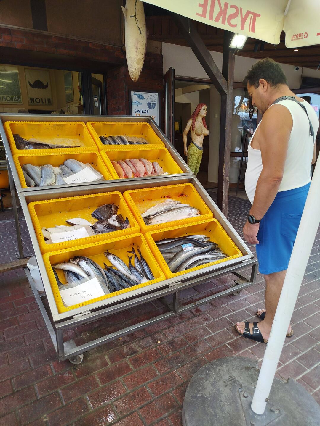 Nachdem es gestern ab Mittag geregnet hat,schien heute endlich Mal die Sonne. Wir sind dann zum Fischmarkt gelaufen und haben uns für Abends Räucherfisch geholt. Und noch an die Ostsee gewandert.