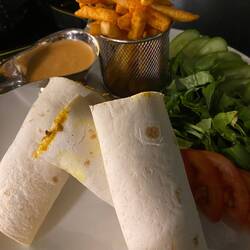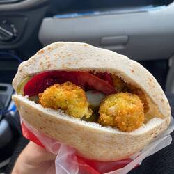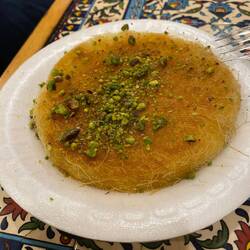 Hemos almorzado el menu tipico (Shashuka) y un menu con Shawarma de cordero que hemos mezclado con el otro menu. Delicioso!!