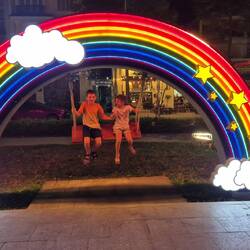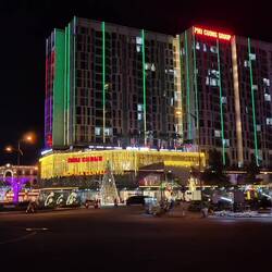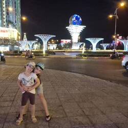 Da verbringed mer en Nacht, bevor mer uf d'Fähre richtig Phu Quoq göhnd. In Vietnam isch alles immer sehr fescht und kitschig belüüchtet. 🤩 Und s'Strass überquere hämmer langsam im Griff 😁