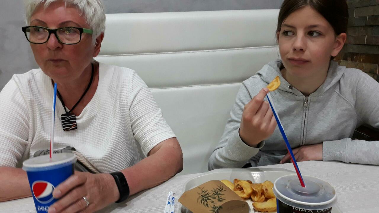 Wir sitzen im Bus zum Flughafen (ja, so früh)
