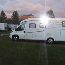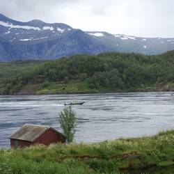 Heute übernachten wir 200 km vor Trondheim. Landschaftlich schön wie alle Plätze, nur leider etwas sumpfig - ein Problem wenn man ein größeres Gefährt hat.