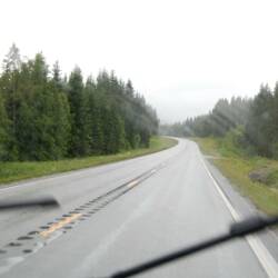 Es regnet und den ersten kapitalen Elch gesehen und schon wieder zu langsam beim Fotografieren