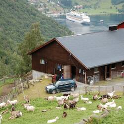 Jetzt geht es über die Adlerschwingen hinab nach Geiranger. Dabei geht es vorbei an Erdbeerfeldern (das diese in dieser Schneeregion wachsen) und an Ziegenherden. Die Adlerschwingen sind steiler undもっと詳しく
