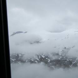 So sollte man vom Dalsnibba nach Geiranger runterblicken (der höchste in Norwegen mit dem Auto befahrbare Aussichtspunkt). Leider hatte der Troll etwas dagegen. Nur den Skywalk konnte man runtergehen.