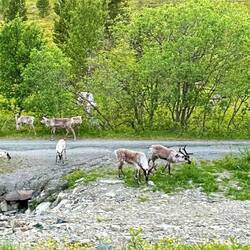 Nach 12 Stunden Reise angehalten. Noch etwa 260 km bis zum Norkap morgen. Super Stellplatz. Nun noch schön Abendbrot essen und gemütliches Bierchen. Die anderen zwei angeln schon 🙈. RentiereRead more