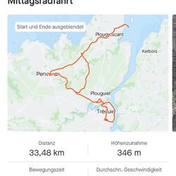 Ausgeschlafen und Croissants zum Frühstück. Nur kurzer Regen dann mit Sonne ideales Wetter für die Radtour entlang der Küste. Schöne Dörfer, man bekommt den Eindruck vieles sind Ferienhäuser.Læs mere
