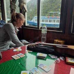 The third day was a rest and chill day, we did some work and music at the nice bonfire cafe, connected with people and played wizard, a card game. In the evening we took the bus to Phong Nha.