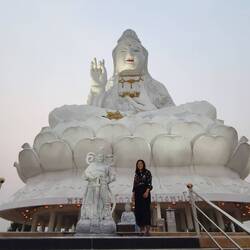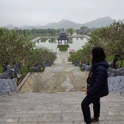 On the second day, we rented a scooter to explore the region. Firstly, we went on a 3h boat tour through caves and mountains which was one of my visual highlights so far. During most of the time on the boat ride I made music inspired by the scenery and the vibe. Wasn't very successful regarding new content though but it felt lovely to play and soak in the energy of the fresh air and mountains. After that experience, we went to Bai Dinh Pagoda, a big Pagoda complex which took us 3h to fully see and explore. It was the biggest Pagoda complex back in the days and still many spiritual events take place there. Fortunately, there was an audio guide which helped us understand the architectural buildings and the history behind it all. I felt really connected to the place because of my connection to buddhist philosophy. And I was proud to recognize some elements that I have learned before about buddhism. It was interesting to see and experience spiritual materialism and recognize it's importance for people to develop faith in buddhism.