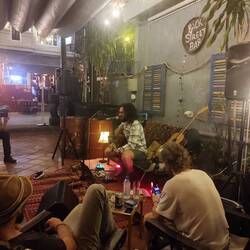 After the Pagoda, we went home, got dinner at a lovely restaurant that had delicious bánh mì (vietnamese baguette) and spent the rest of the day at the bonfire cafe again. There I met some musicians and we did a jam session, even wrote on a song that I started a few days ago. It's about fire and was inspired by sitting at bonfires ☺️ We went again to the party bus and danced 😁. Props do not go out to the DJ because there was none and the playlist consisted of peoples song requests that were skipped after the refrain.