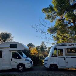 Wir treffen uns wieder mit den Freunden aus Luxemburg und stehen an einer schönen Bucht, so nahe am Meer wie noch nie. Der Parkplatz gehört zu einer Taverne und Ecofarm, und die Oliven und dasLeia mais