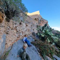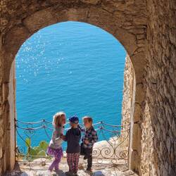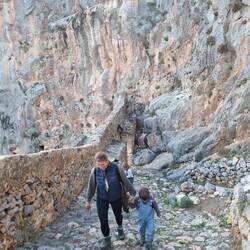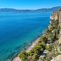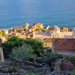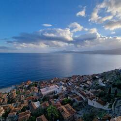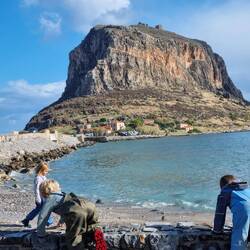 Wir übernachten zwei Tage im kleinen Hafen von Gefira und wandern zur Festungsinsel Monemvasia. Das Wetter ist durchwachsen, der Start der Wanderung daher etwas holprig. Der erste Schauer treibt unsLeia mais