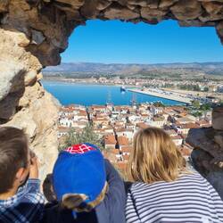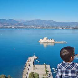 Das malerische Städtchen Náfplion ist mit seinen engen Gassen, den lauschigen Plätzen, der schönen Hafenpromenade und den gleich zwei stattlichen Burgen, die es überragen, Anziehungsmagnet fürLeia mais