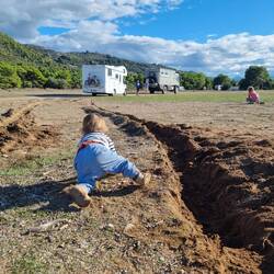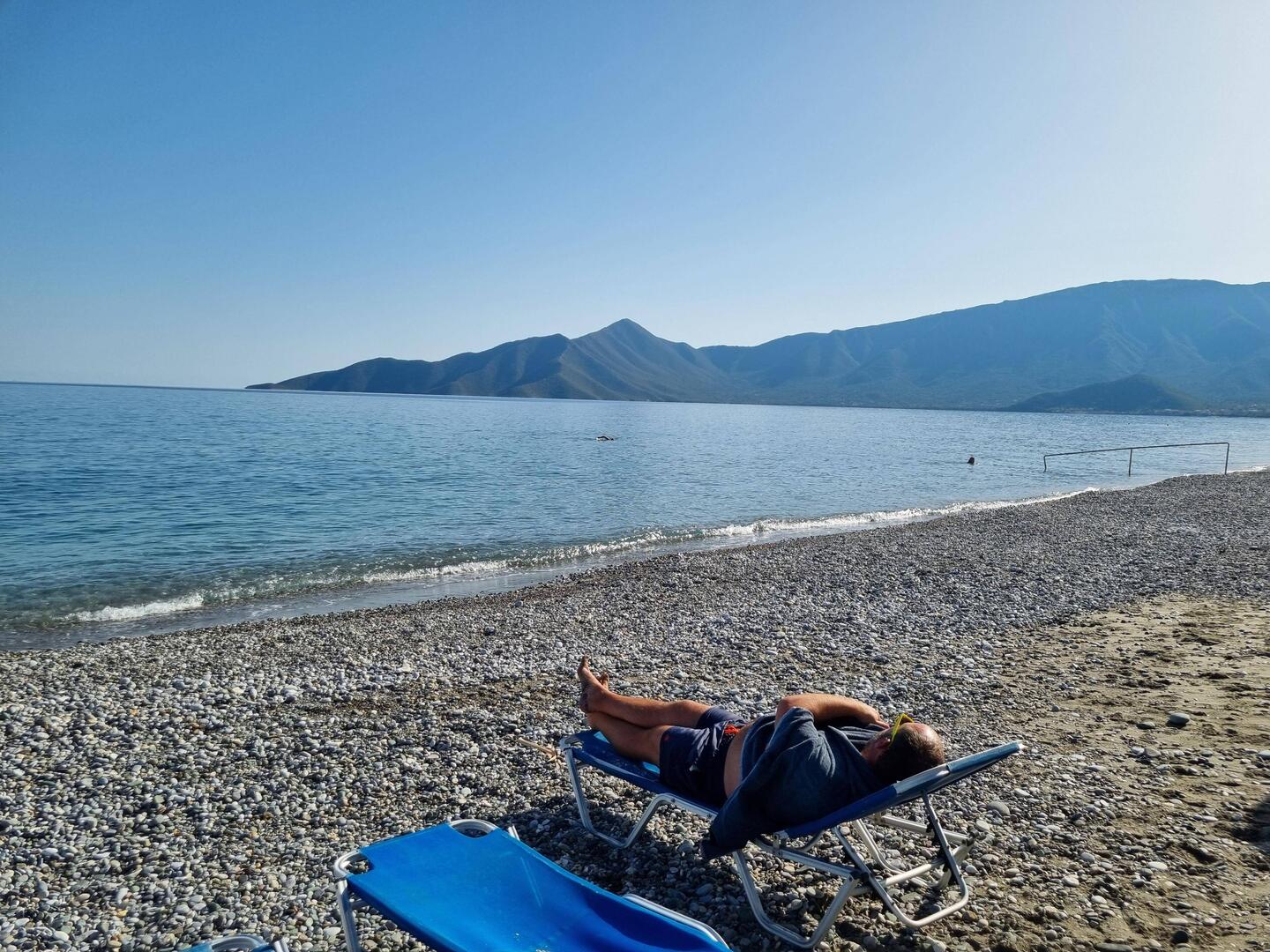 Auf dem Campingplatz Semeli bei Leonidi verbringen wir wieder ein paar entspannte Tage. Am Strand wird fleißig gebuddelt und gebadet, die kleine Wanderung zu einer Kapelle bietet tolle Ausblicke aufLeia mais