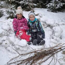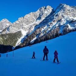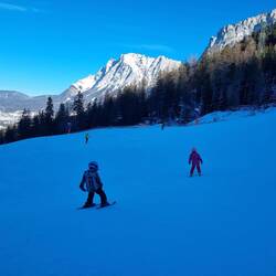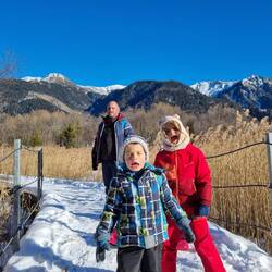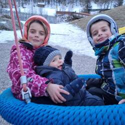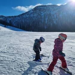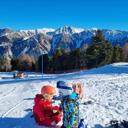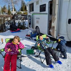 Am Campingplatz in Marienberg verbringen wir eine schöne Skiwoche mit fast leeren Pisten, ruhigen Wanderwegen und gemütlichen Hütten für den Einkehrschwung. Karlotta und Friedrich steigern sichLeia mais