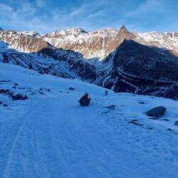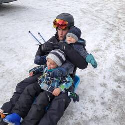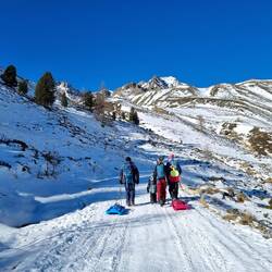 Fast schon Tradition - wir gehen Ski fahren, wandern und Schlitten fahren im Schnalstal. Das Wetter ist herrlich. Karlotta und Friedrich düsen auf Skiern durch den Funpark und und mit Anna und MarkLeia mais