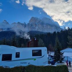 Wir übernachten auf dem Weg zum Reschensee auf einem schönen Stellplatz bei Nauders. Am Morgen wird entsorgt, Wasser aufgenommen und eingekauft - wir sind bereit für die Piste!