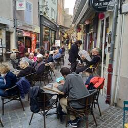 A part les courses à la supérette, c'est repos aujourd'hui. Nous avons réservé des places au resto Le Jardin des Pins pour la soirée " Moules-Frites à volonté". Le camping a son propre vignobleLæs mere