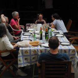 David, Ana et Tata viennent déjeuner au cc. Le ciel est couvert et ce temps frisquet n’invite pas à passer la journée à la plage. Ibiza 41 vit aujourd’hui auLäs mer