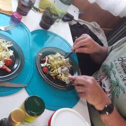 Nous attendons la pièce de rechange et profitons de la vie au camping. Après nos courses au Consum, nous préparons le dîner pour ma soeur et la famille de Ruben.Läs mer