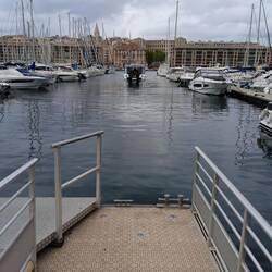 Le bus no 51 Aix-Marseille nous conduit en une heure à la gare St-Charles. Nous descendons jusqu'au Vieux Port et longeons le quai en direction Fort St Nicolas. Le bar de la Marine nous sert unLæs mere