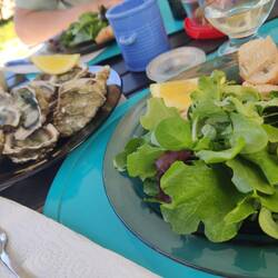 Aujourd'hui est une parfaite journée de vacances "campingcar": nous nous rendons au grand marché de Sanary, faisons nos emplettes et mangeons ensuite ces bons produits. Il y a beaucoup de monde auLæs mere