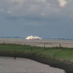 La pluie nous facilite un peu le départ de Fedderwardersiel. Un trajet de 1h30 est prévu aujourd’hui, nous contournons le “Jadebusen”, la baie de Willhelmshaven, etOkumaya devam et