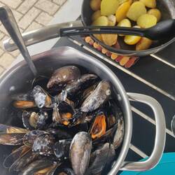 Le ciel est encore bien chargé ce matin, avec qq gouttes, le reste de l’orage de la nuit passée. Habillés en conséquence, nous allons écouter le Shantychor Festival.Okumaya devam et