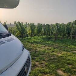 Qu’est-ce qu’elle était bonne notre nuit entre les ceps de vigne! Les vendanges commenceront la semaine prochaine. Un dernier “petit-déjeuner cc” et un peu moins deOkumaya devam et