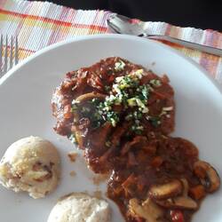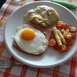 Eric travaille à la réfection du chemin d'accès et moi, je fais me premières courses à la Migros d'Orbe depuis deux mois. Du foie de veau et des roestis et coupe Romanoff, sontLeer más