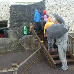 On croyait d'être seuls sur notre parking, mais au réveil il y avait 5cc. Sur notre trajet pour Dublin, nous allons voir quatre sites historiques dans la Vallée de la Boyne. Dans le Monasterboice Cemetery s’élève la Muiredach's Cross (entre d'autres), vielle d'au moins 1000ans, la plus belle croix sculptée d'Irlande. C’est une véritable bande-dessinée. La tour ronde, bien conservée, servait aux moines de se réfugier lors des attaques des Vikings. Old Mellifont Abbey, premier couvent cistercien, fût fondé par St-Malachy au 12ème siècle, qui découvrit lors d'un pèlerinage à Rome, l'abbaye de Citeaux. C'était bien plus qu'un couvent, un village, implanté au bord de la rivière et riche terrain pour des abeilles (d'où le nom: puit de miel) qui apportaient une partie du revenu au monastère. Cet endroit a connu le même sort que tous les autres couvents, quand les Anglais ont pris le pouvoir en 1690. La Battle of the Boyne a justement eu lieu tout près, où 25’000 soldats irlandais, aidés par des français, ont perdu la vie. Depuis ce jour-là, l'Angleterre a dominé l'Irlande jusqu'au début du 20ème siècle. Ce coup de force est retracé au Visitor's Center. Un magnifique jardin clos invite à la promenade et un tea-room adjacent nous sert un lunch. La dernière visite concerne Brú na Bóinne, site classé UNESCO, et son tumulus de Newgrange (85m de diamètre). Nous pouvons pénétrer à l'intérieur (au compte gouttes) par un couloir étroit, long de 19m, et fait avec des pierres dressées. Il y a des chambres funéraires, des roches ornées de spirales et le clou de la visite: l'architecte (il y a 5000 ans) a fait une petite fenêtre en-dessus de la porte d'entrée qui laisse pénétrer le soleil qui illumine le couloir et le sanctuaire uniquement le 21 décembre. L'enchevêtrement des tonnes de dalles est tellement bien fait, qu'encore aujourd'hui aucune goutte de pluie ne rentre. Il ne nous reste plus qu'à rejoindre la capitale et son camping où Eric nous a fait réserver un emplacement.Read more