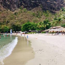 Nächster Stopp war eine Bootstour (im Grunde war die Geschwindigkeit des Boots unverantwortlich, aber Tristan hat nur geglugst: „HeHeHe“) mit dem Speedboat zu einem Privatstrand, der genauMeer informatie